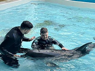 In Kaunas, in einem von der Stadt neu zugewiesenen Lagergebäude, erwartete uns die Leiterin unserer Partnerorganisation, Frau Loreta, wie immer mit Helfern. Nach dem Entladen der Sachspenden erklärte uns Frau Loreta weitere Projekte der Organisation. So steht zur Zeit eine Therapie behinderter Kinder mit Delfinschwimmen an der Tagesordnung.